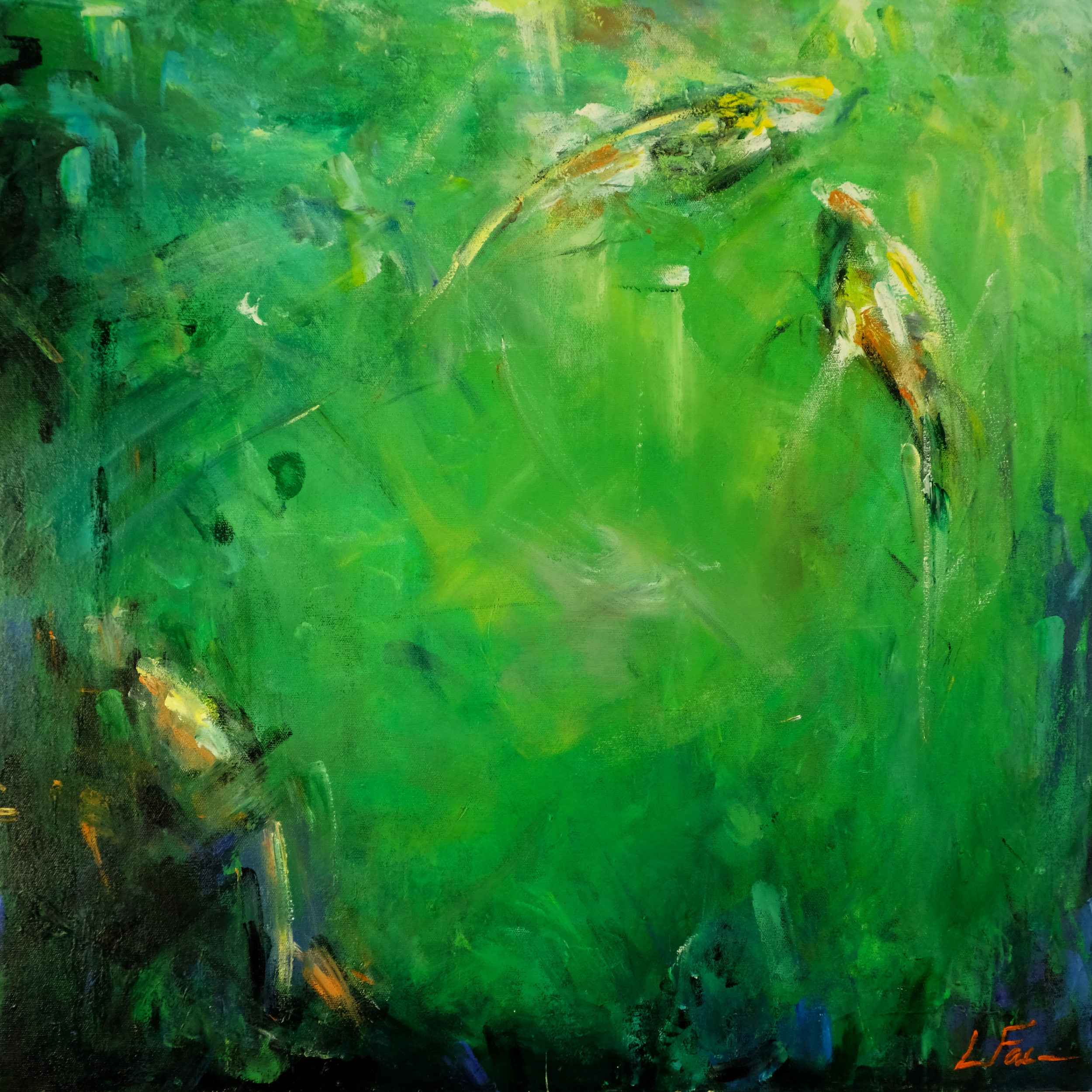 Out of the blue-grey shadows of dense forest a tawny-leaved tree declares itself. The imperfect mirror of the dark water shows bright traces of gold amid its own reflective brilliance of aquamarine dappling.