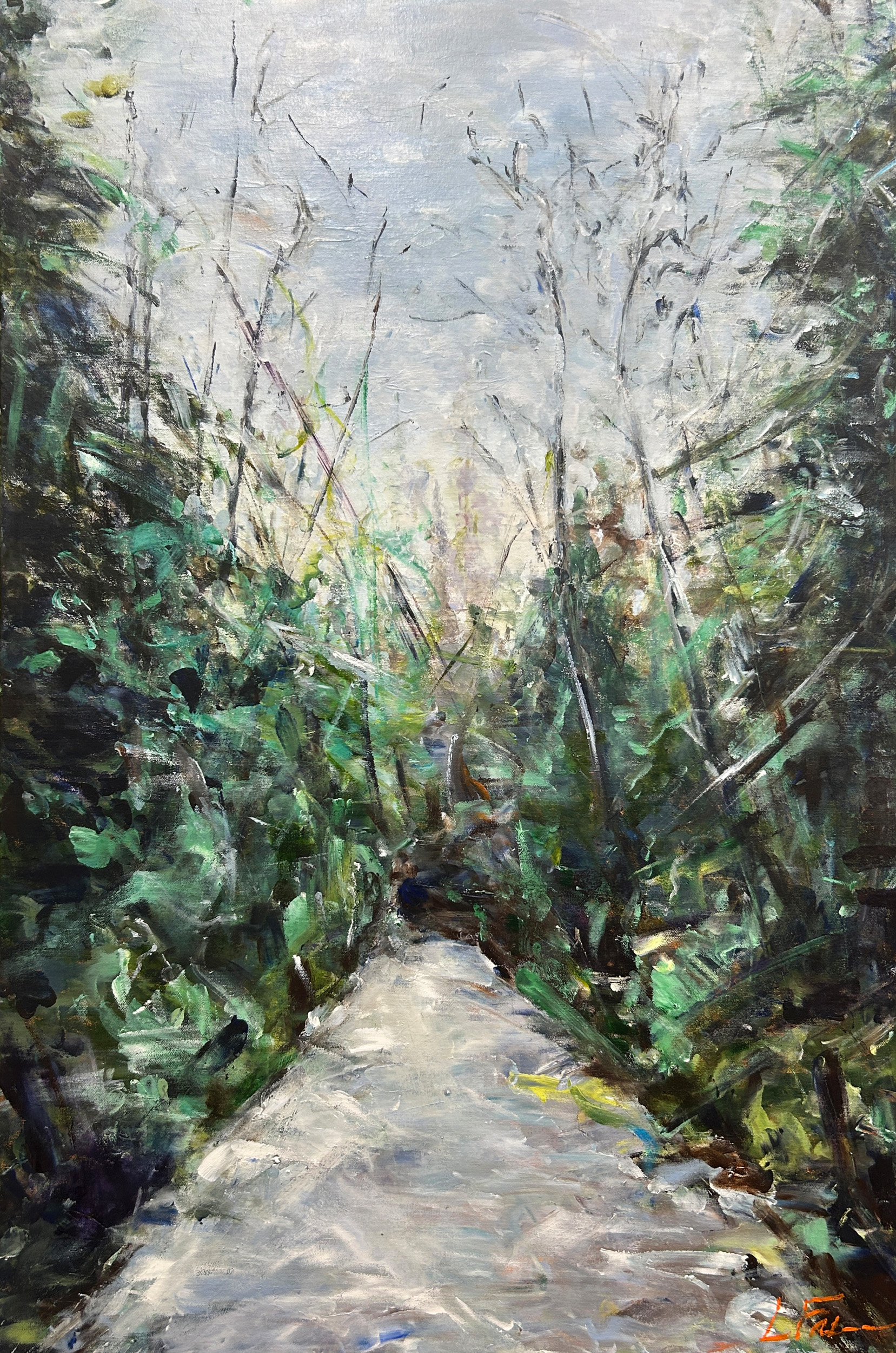 Settled snow reminds me to look, many times, slowly. Snow is not white; it is sapphire and mint and butter and ivory. It is the iridescence of Good Witch Glenda’s gown and the dull weft of an old wool coat. Painting snow requires me to forget any notion of white at all.